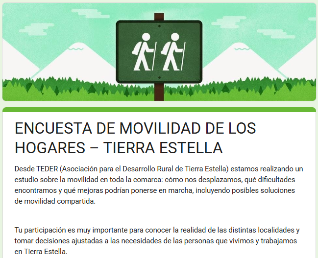 Desde TEDER (Asociación para el Desarrollo Rural de Tierra Estella) estamos realizando un estudio sobre la movilidad en toda la comarca: cómo nos desplazamos, qué dificultades encontramos y qué mejoras podrían ponerse en marcha, incluyendo posibles soluciones de movilidad compartida.